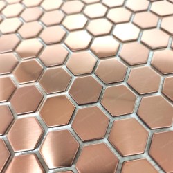 Cette mosaïque peut également être utilisée dans des espaces inattendus, comme un mur d’entrée ou une alcôve décorative. Sa teinte cuivrée brillante et ses motifs hexagonaux permettent de structurer visuellement un espace tout en le rendant plus accueillant et chaleureux. Que vous souhaitiez rénover une pièce ou ajouter une touche originale à un nouvel aménagement, Kasi Cuivre est une solution décorative qui laisse libre cours à votre créativité.